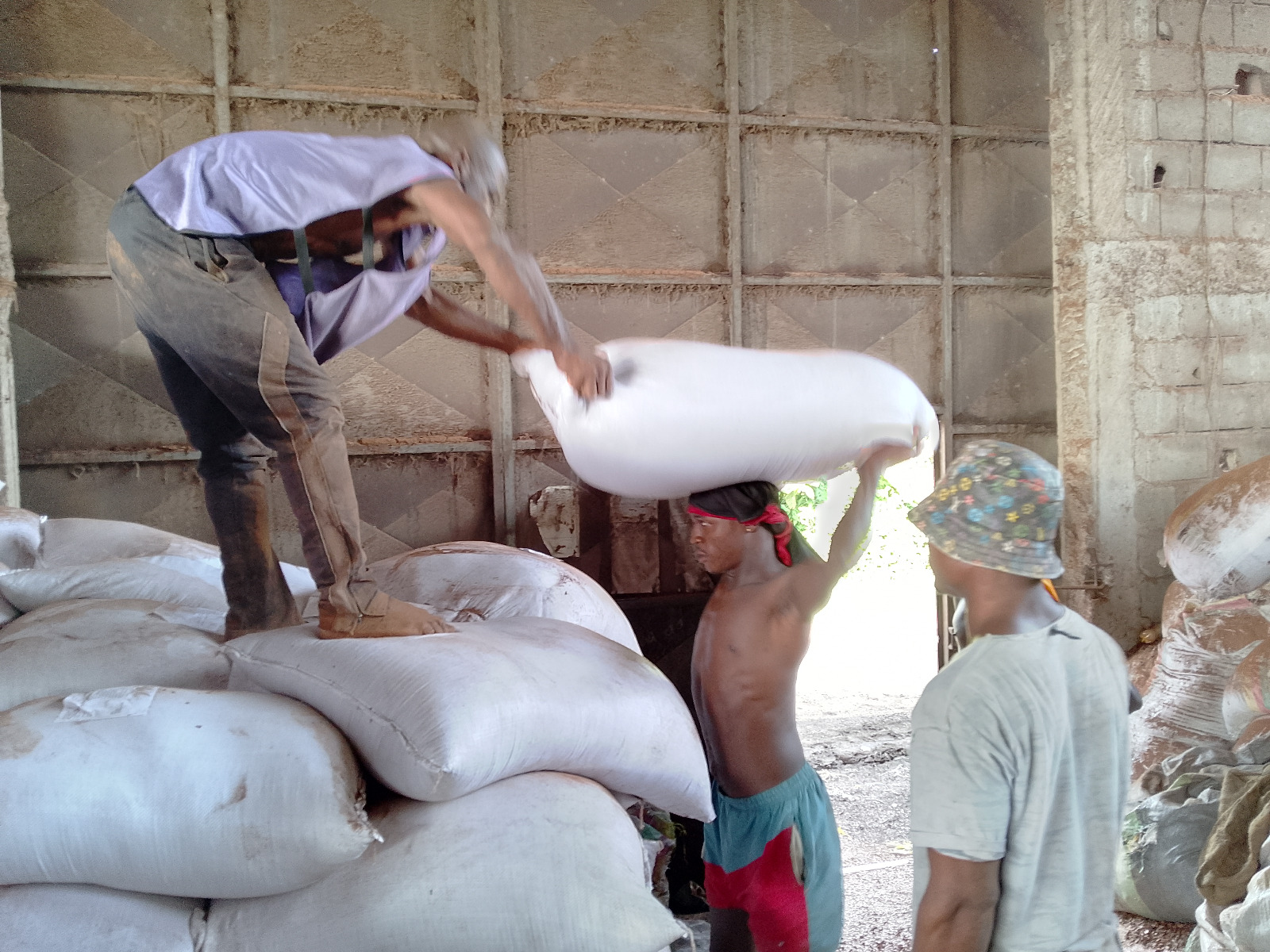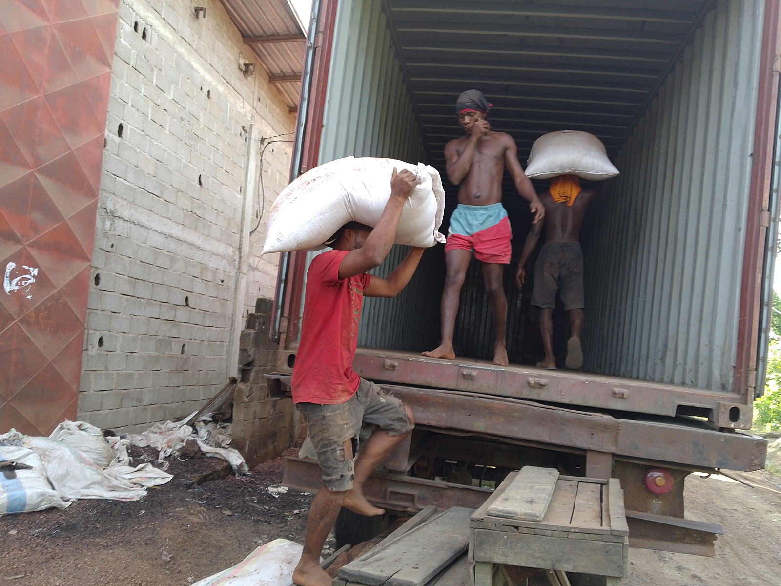 Quelques images illustrant l'empotage des risidus de cacao pour le compte de nos partenaires